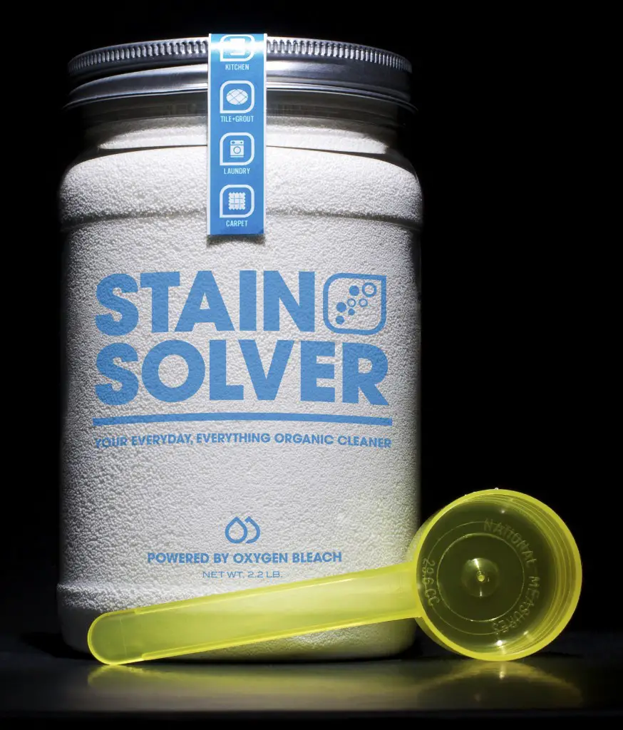 Oxygen bleach solves many problems. It cleans and renews safely most anything from decks to grout, to whitewalls and old, yellowed, but favorite sweaters, to laundry and pet disasters.. and more! Stain Solver is a non-toxic wonder cleaner!